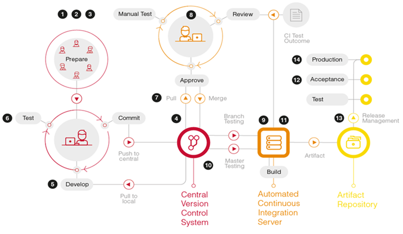 De hoge mate van automatisering heeft directe gevolgen voor de auditdocumentatie: de broncode, geregistreerd in het VCS met alle stappen, activiteiten, wijzigingen, wie en wanneer, wordt de nieuwe (audit)documentatie. De rol van documentatie verschuift van imperatief naar informatief. Naarmate DevOps-teams volwassener worden, verschuift de focus bovendien van teamvrijheid naar normalisatie en standaardisatie van tools en services, vaak door de vorming van Shared Services of Platform teams.