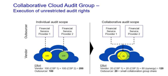 Nederlandse financiële instellingen blijken als beleid te hanteren het right-to-audit inclusief de toegang tot de subcontractors op te nemen in het contract. Tussen de klanten en de CSP bestaat evenwel geen level playing field in omvang, kennis, kunde en ervaring. Hierdoor ontstaan veelal zeer complexe besprekingen tussen klanten en CSP. Meerdere grote Nederlandse financiële instellingen proberen deze kloof te verkleinen door gebruik te maken van de door de richtlijn geboden mogelijkheid van pooled audits en actief te participeren in de Collaborative Cloud Audit Group (CCAG) en in dit kader uitgevoerde audits.