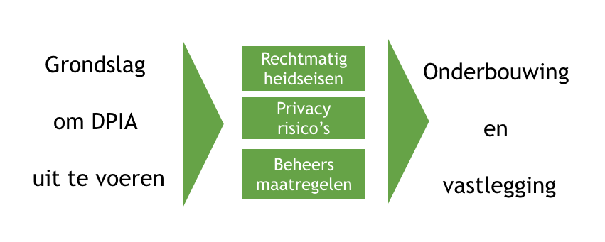 Het DPIA proces begint met een beschrijving van het object van onderzoek en een toetsing aan een aantal elementaire rechtmatigheidseisen. De uitvoering van het DPIA proces zal altijd deugdelijk moeten worden onderbouwd en vastgelegd.